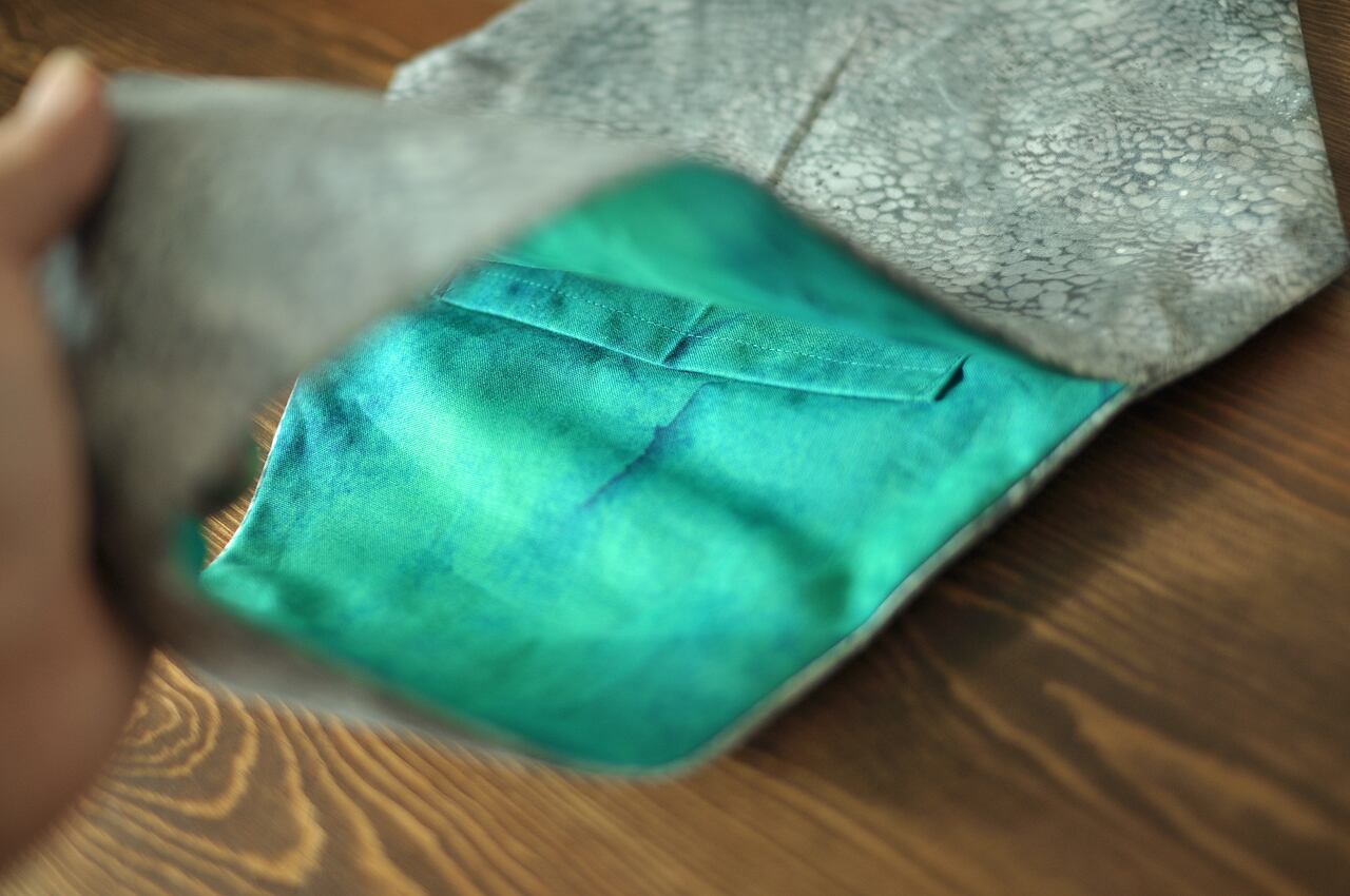 バッグを持った時に見える、裏布のエメラルドグリーンが映えるバッグとなっています。
